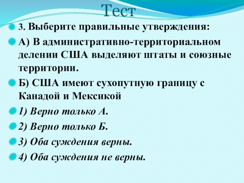 2. Какие штаты, входящие в состав США, не имеют сухопутных границ