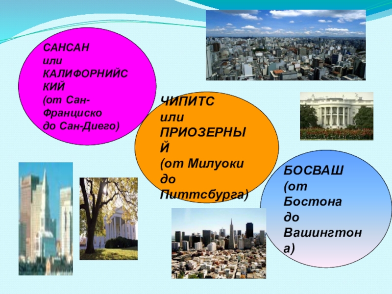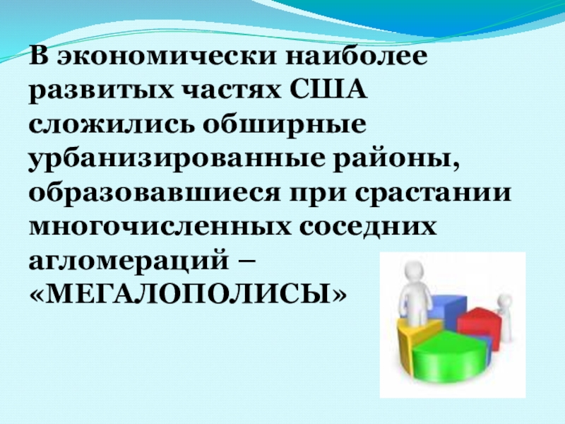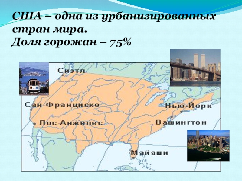Слайд 39В экономически наиболее развитых частях США сложились обширные урбанизированные районы, образовавшиеся