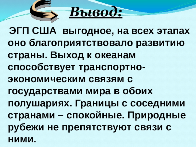 ЭГП США выгодное, на всех этапах оно благоприятствовало развитию