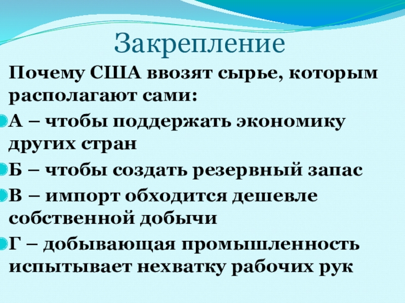 Слайд 42Почему США ввозят сырье, которым располагают сами: