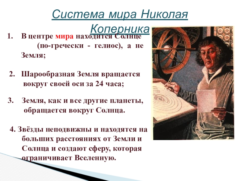 4. Звёзды неподвижны и находятся на больших расстояниях от Земли и Солнца и создают сферу, которая ограничивает Вселенную.