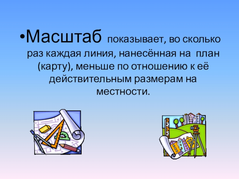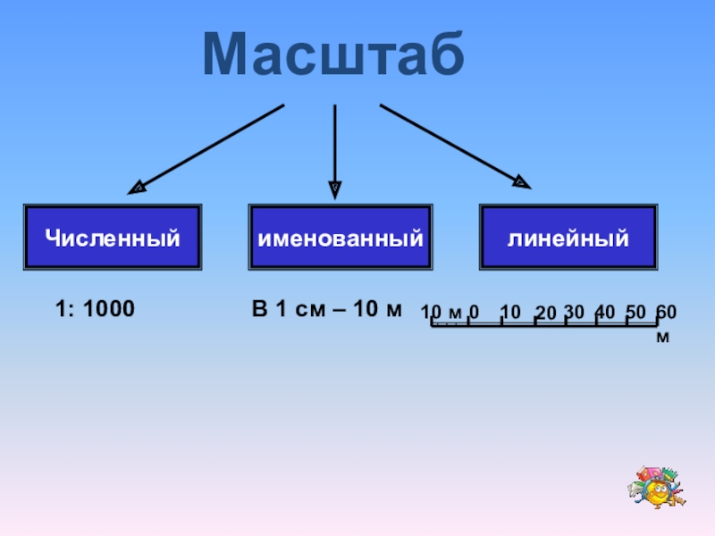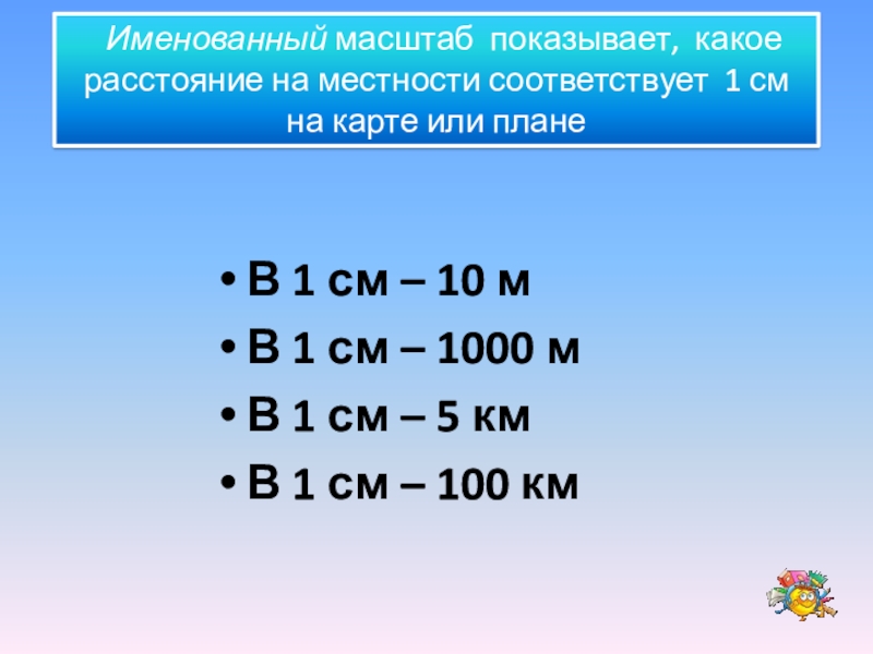 Именованный масштаб показывает, какое расстояние на местности соответствует 1 см на карте или плане