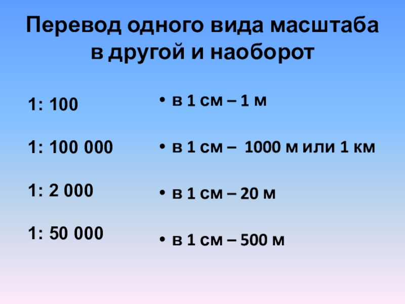 При переводе численного масштаба