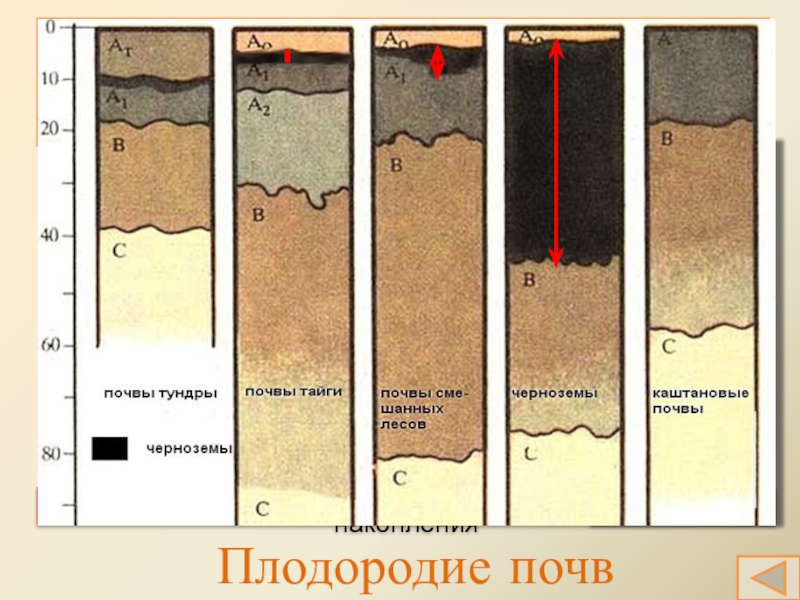 Слайд 8Плодородие почв зависит от мощности горизонта накопления