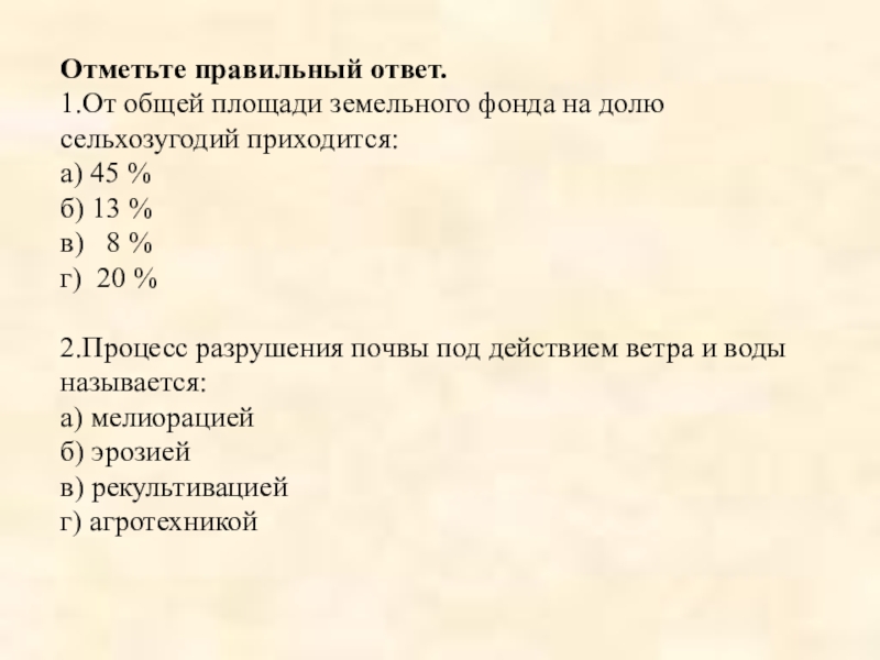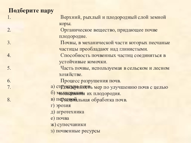 2.Процесс разрушения почвы под действием ветра и воды называется: