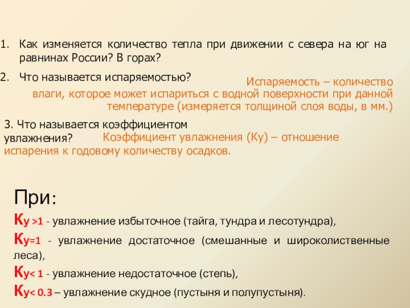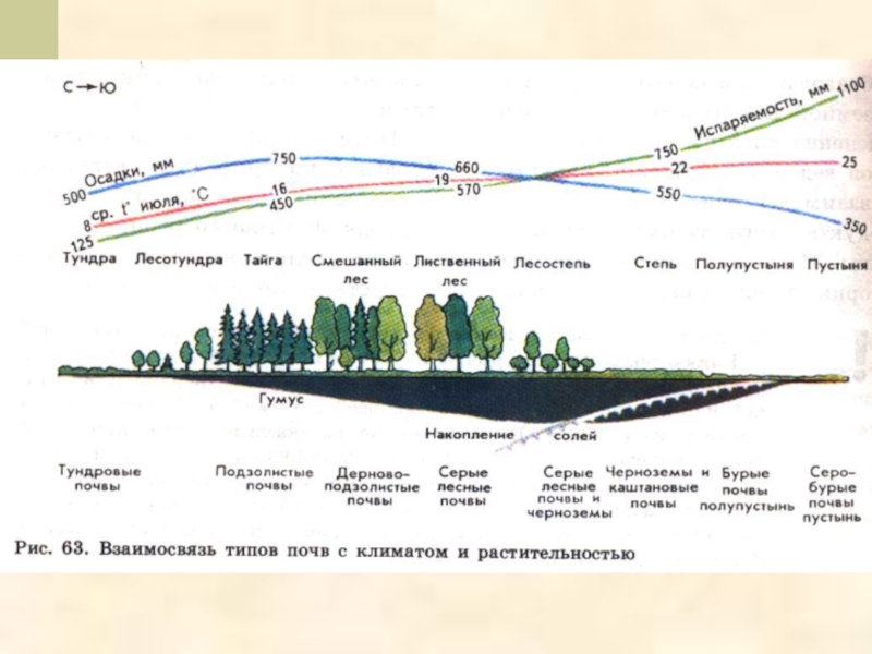 Важнейшей причиной зональности почв В.В.Докучаев назвал изменение климата, его главных характеристик – режима увлажнения и температурного режима.