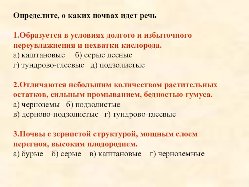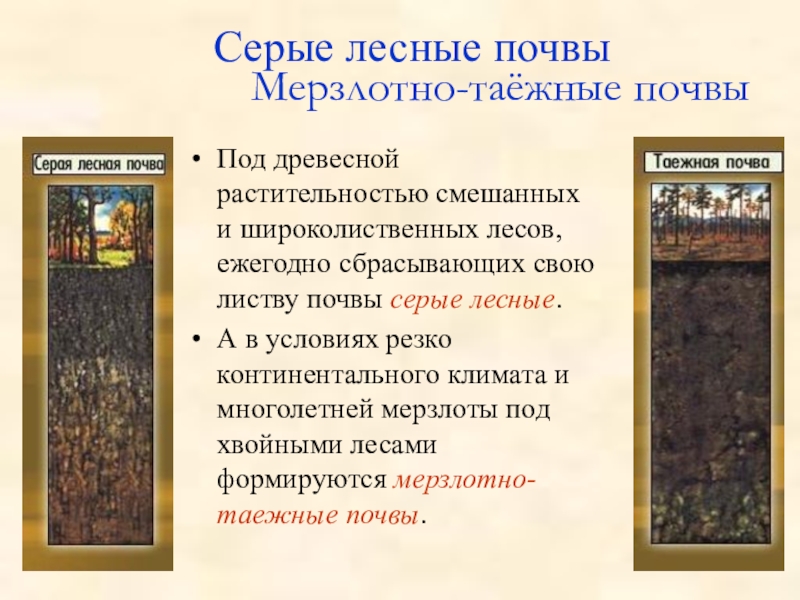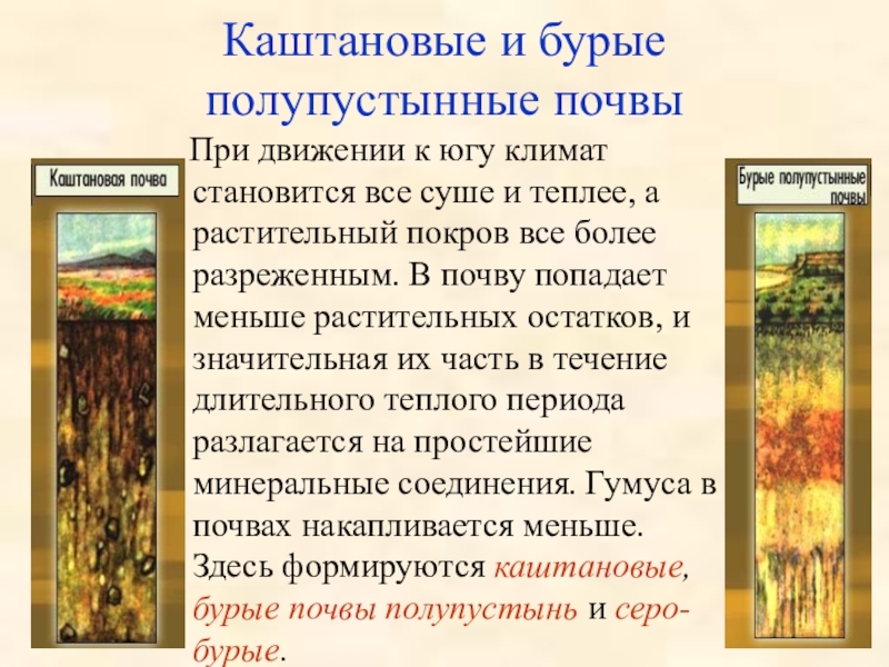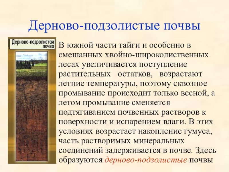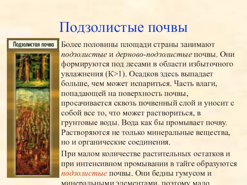 2.Отличаются небольшим количеством растительных остатков, сильным промыванием, бедностью гумуса.