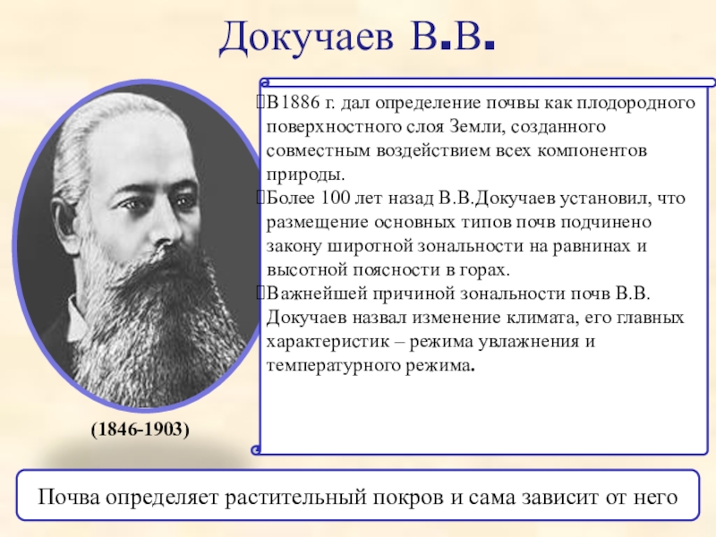 Слайд 4В1886 г. дал определение почвы как плодородного поверхностного слоя Земли, созданного