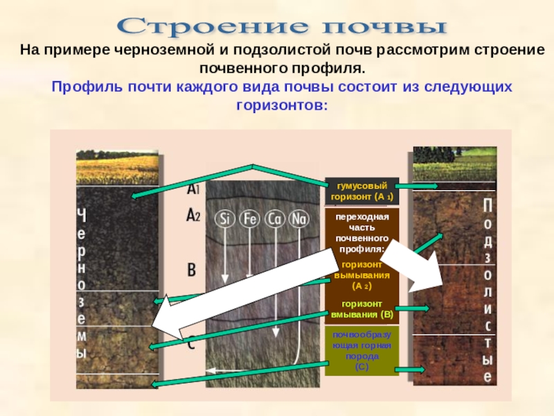 На примере черноземной и подзолистой почв рассмотрим строение почвенного