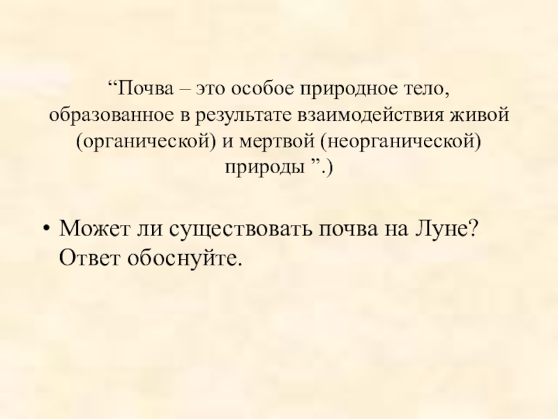Слайд 16“Почва – это особое природное тело, образованное в результате взаимодействия живой