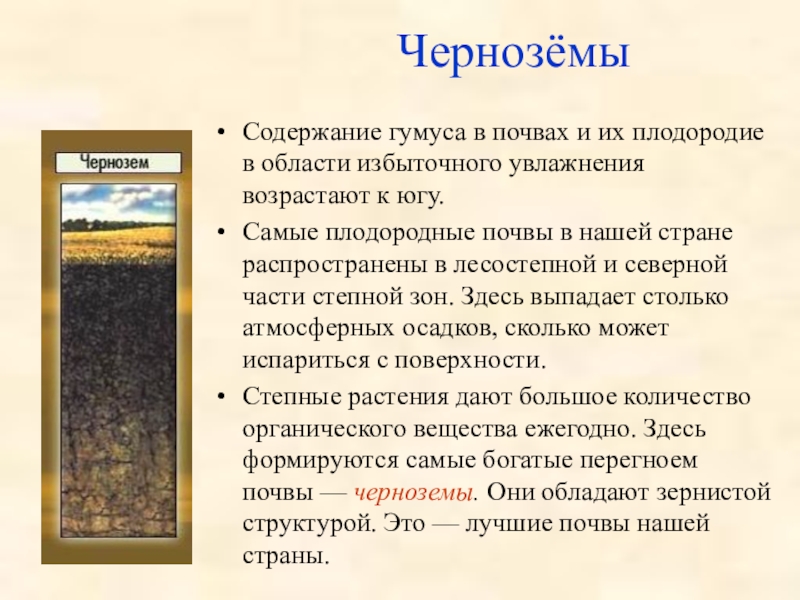 3.Почвы с зернистой структурой, мощным слоем перегноя, высоким плодородием.