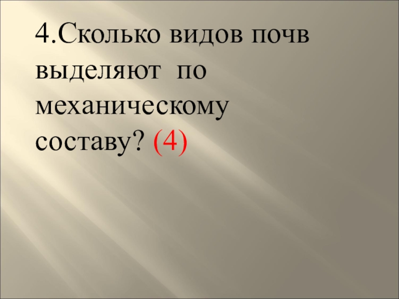 Слайд 154.Сколько видов почв выделяют по механическому составу? (4)