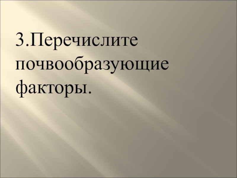 Слайд 143.Перечислите почвообразующие факторы.(материнская горная порода, остатки живых организмов , микроорганизмы, вода,