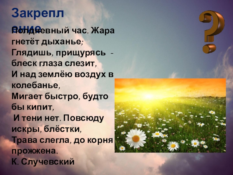 Это сайт презентаций, где можно хранить и обмениваться своими презентациями, докладами, проектами, шаблонами в формате PowerPoint с другими пользователями. Мы помогаем школьникам, студентам, учителям, преподавателям хранить и обмениваться учебными материалами.
