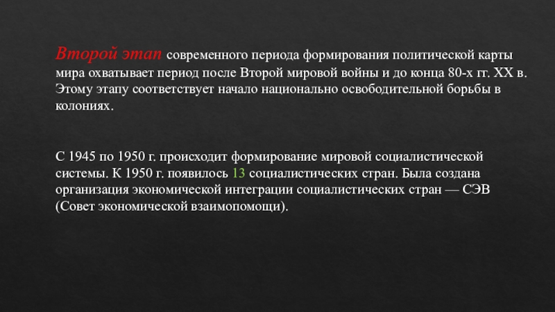 С 1945 по 1950 г. происходит формирование мировой социалистической
