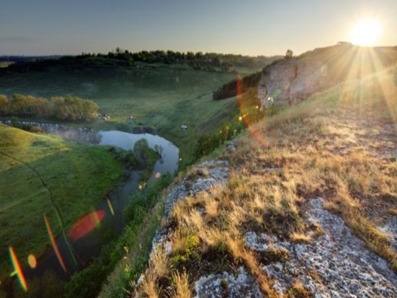 долине Дона и Быстрой сосны. Места невероятно-живописные: известняковые скалы и пещеры, дубравы и березняки, степные участки и живописные долины, напоминающие Альпы.