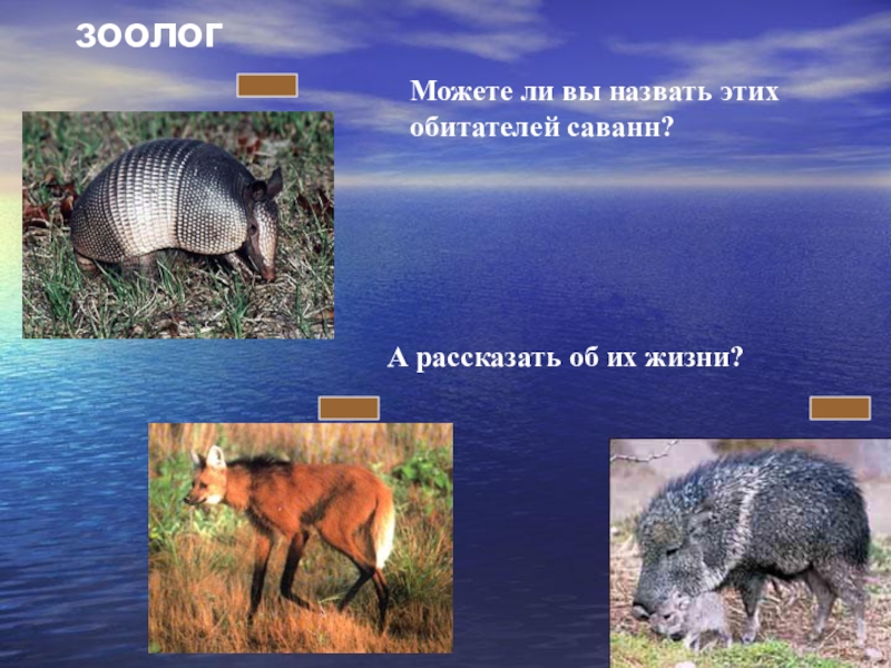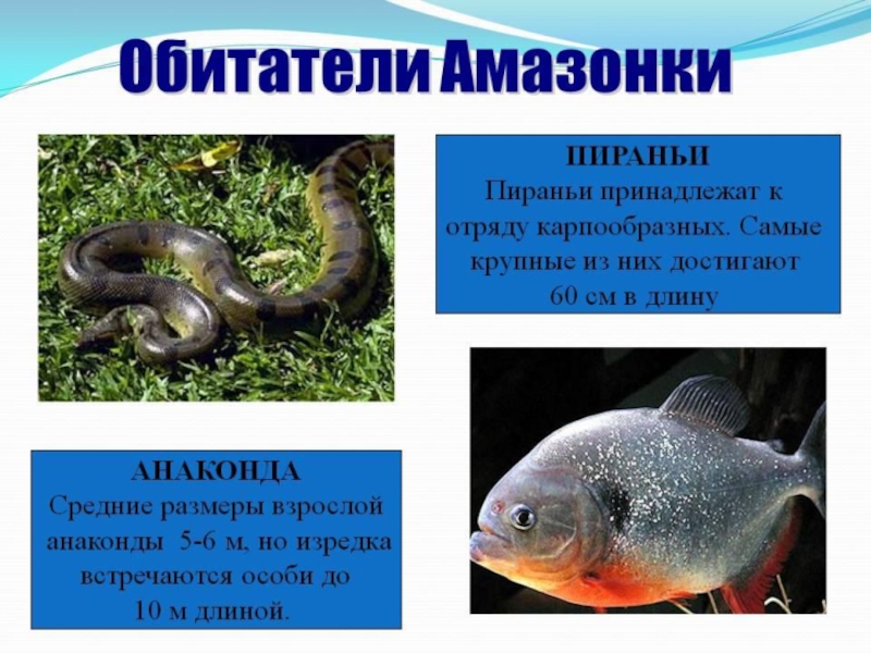 Другие животные на этом слайде: колибри, ара, анаконда.
