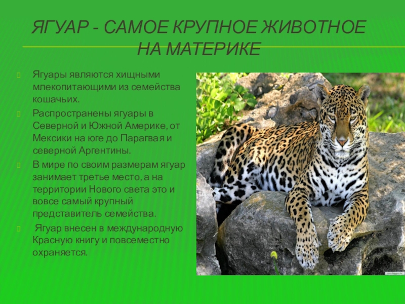 В мире по своим размерам ягуар занимает третье место, а на территории Нового света это и вовсе самый крупный представитель семейства.