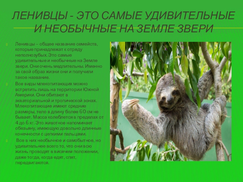 Слайд 14Ленивцы - Это самые удивительные и необычные на Земле звери