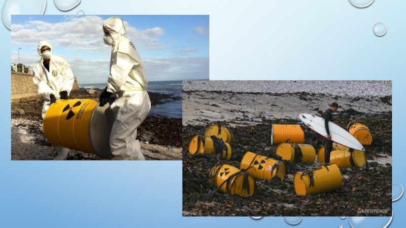 Мировой океан стал складом контейнеров, которые содержат высокорадиоактивные отходы атомной энергетики. Вещества трансурановой группы остаются активными несколько тысяч лет. И хотя высокоопасные отходы упакованы в герметичные контейнеры, опасность радиоактивного заражения остается очень высокой. В настоящее время угрозу представляют те отходы, которые были захоронены в водах Мирового океана 30-40 лет назад.