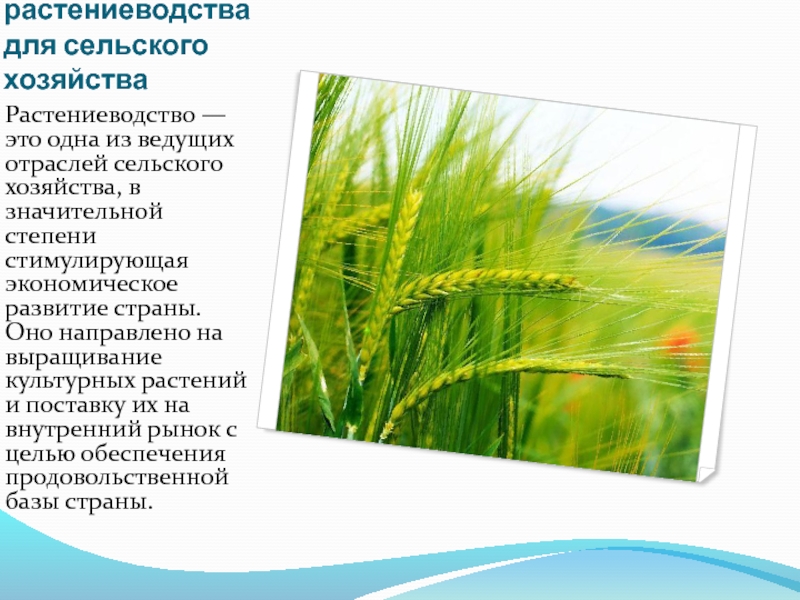 Слайд 3Значение растениеводства для экономики страны