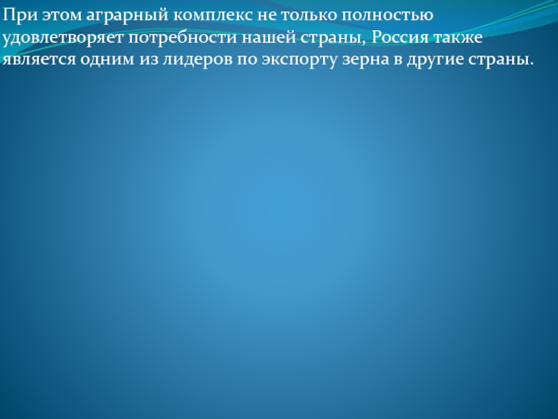 Слайд 4При этом аграрный комплекс не только полностью удовлетворяет потребности нашей страны,
