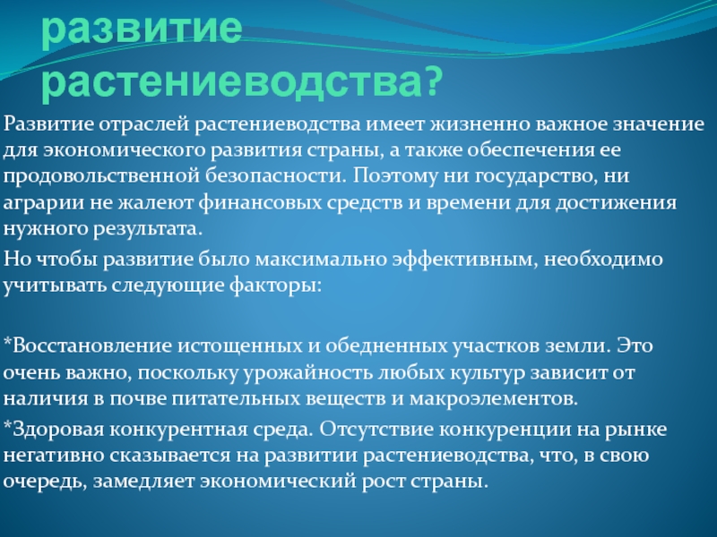 *Здоровая конкурентная среда. Отсутствие конкуренции на рынке негативно сказывается на развитии растениеводства, что, в свою очередь, замедляет экономический рост страны.