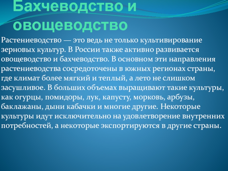 Слайд 7Бахчеводство и овощеводство