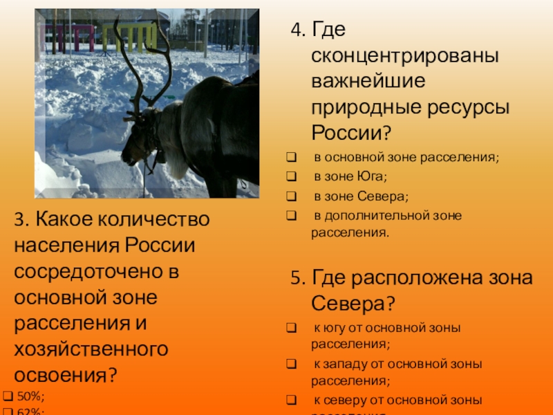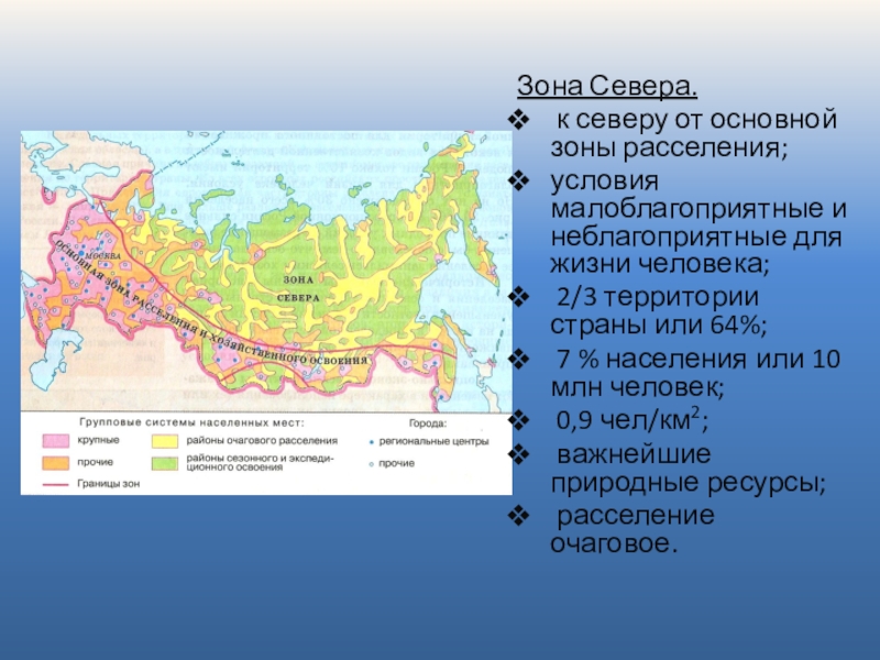 3. Какое количество населения России сосредоточено в основной зоне расселения и хозяйственного освоения?