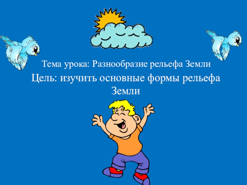 Тема урока: Разнообразие рельефа ЗемлиЦель: изучить основные формы рельефа Земли