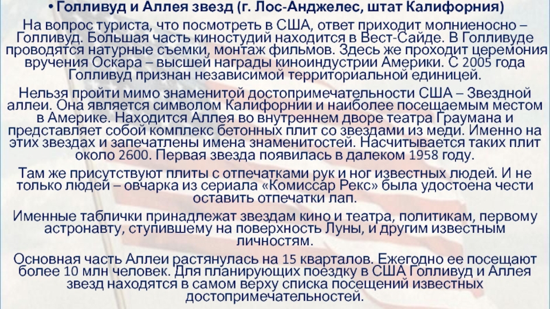 Слайд 43Голливуд и Аллея звезд (г. Лос-Анджелес, штат Калифорния)