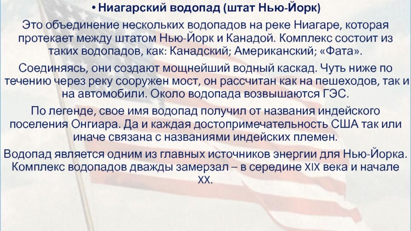 Слайд 45Ниагарский водопад (штат Нью-Йорк)