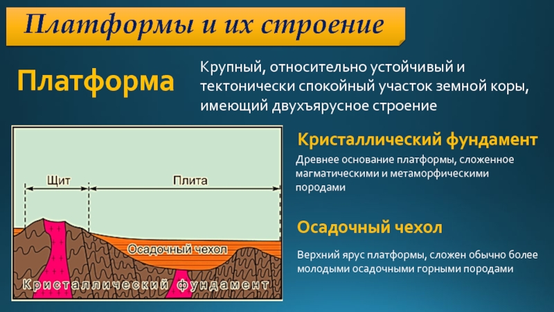 Древнее основание платформы, сложенное магматическими и метаморфическими породами