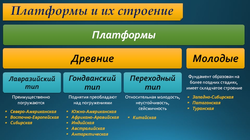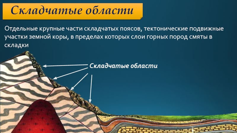 Фундамент образован на более поздних стадиях, имеет складчатое строение