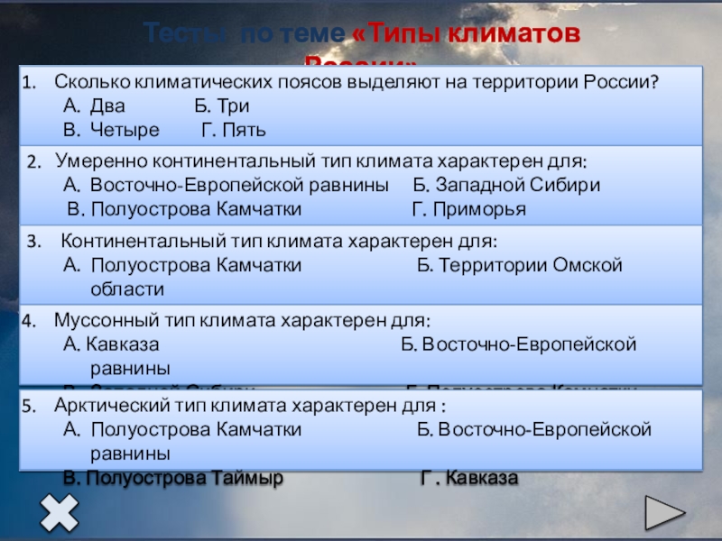 Вопросы по теме «Типы климатов России»