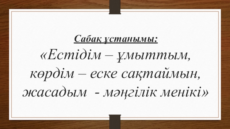 Слайд 2Сабақ ұстанымы: «Естідім – ұмыттым, көрдім – еске сақтаймын, жасадым - мәңгілік