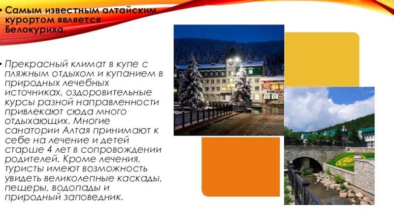 Слайд 8Самым известным алтайским курортом является Белокуриха.