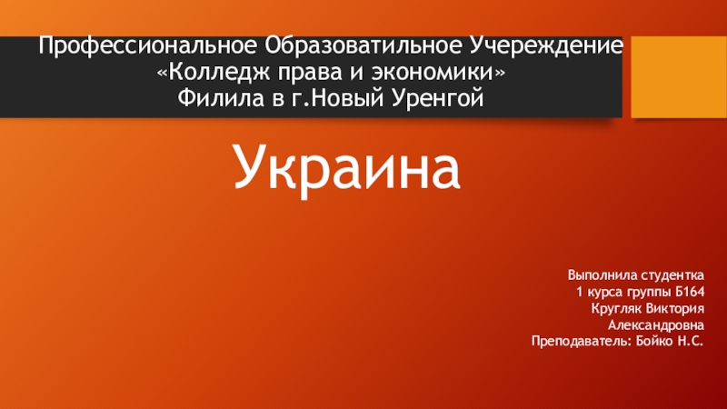 Профессиональное Образоватильное Учереждение  «Колледж права и экономики»  Филила в г.Новый УренгойУкраинаВыполнила студентка 1 курса группы