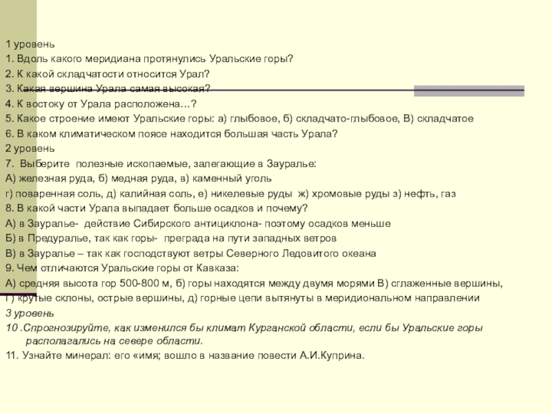 9. Чем отличаются Уральские горы от Кавказа: