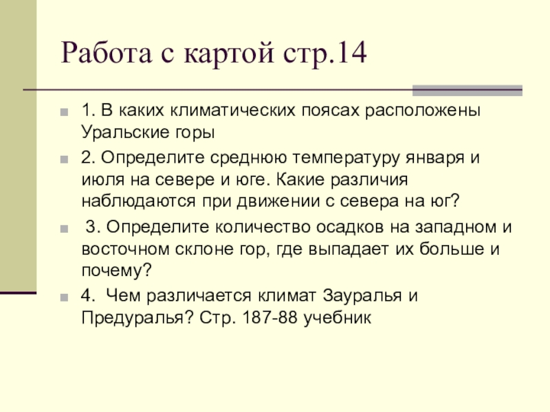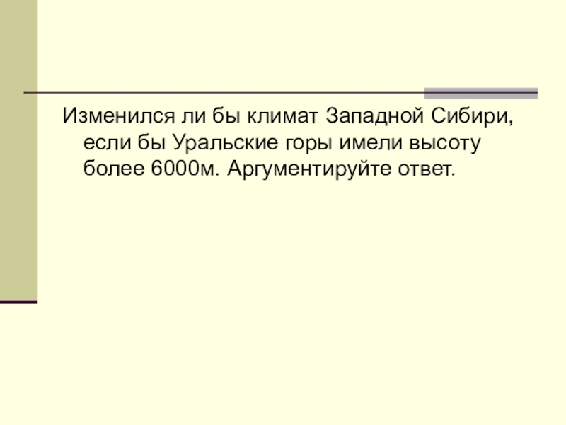 10 .Спрогнозируйте, как изменился бы климат Курганской области, если бы Уральские горы располагались на севере области.
