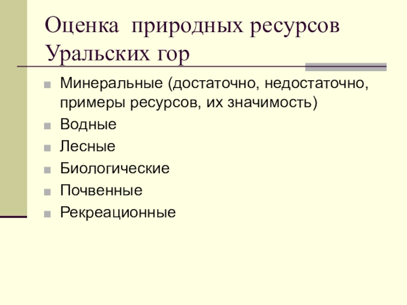 7. Оценка природных ресурсов.