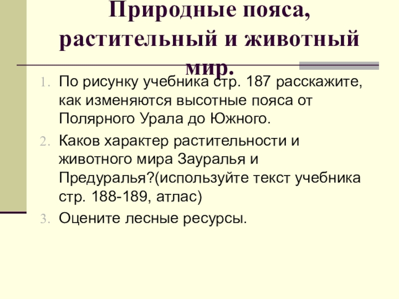 1. Изучить особенности природы Уральских гор, выявить