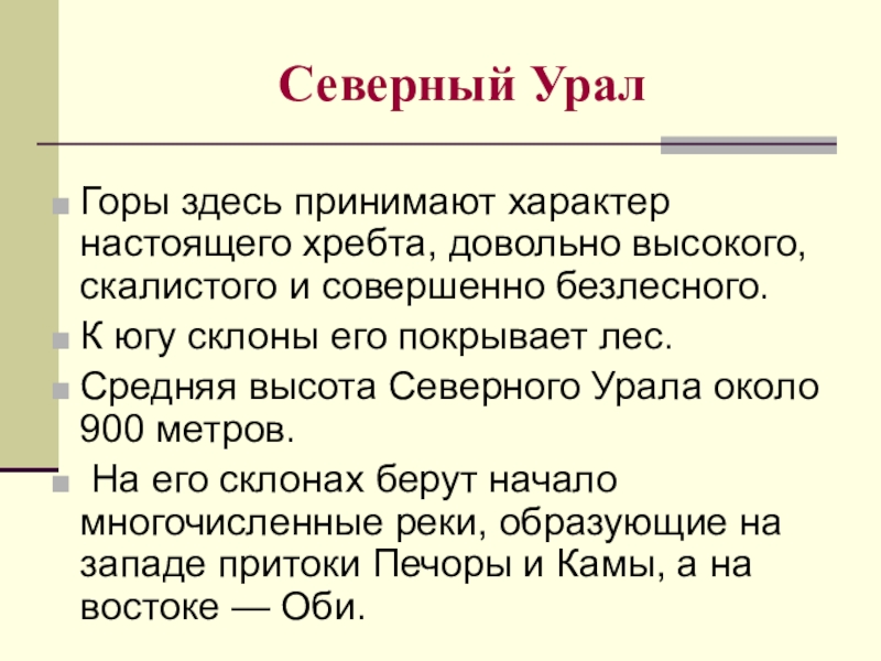 Средняя высота Северного Урала около 900 метров.