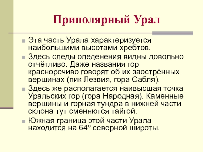 Слайд 42Эта часть Урала характеризуется наибольшими высотами хребтов.