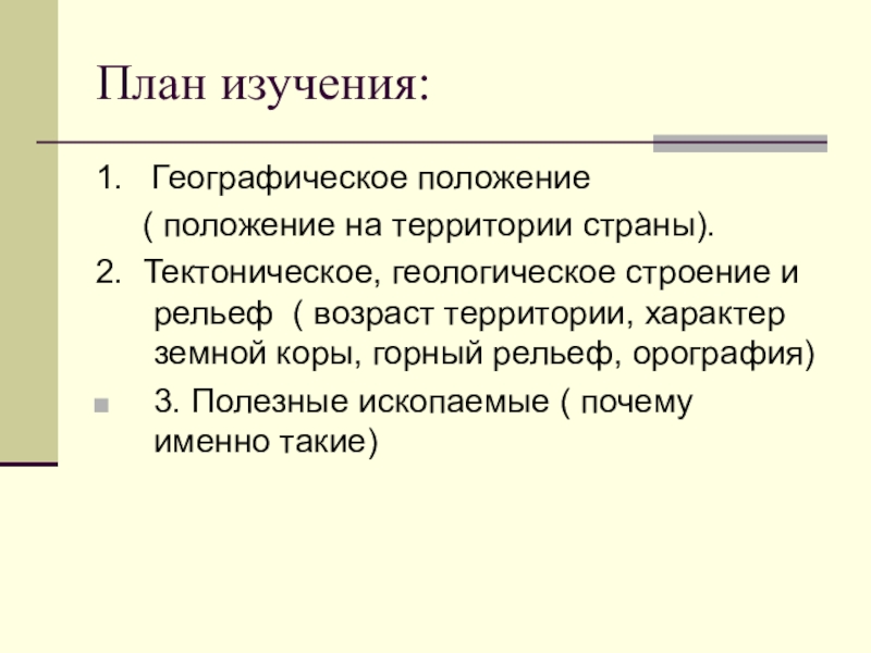 2. Тектоническое, геологическое строение и рельеф ( возраст территории, характер земной коры, горный рельеф, орография)