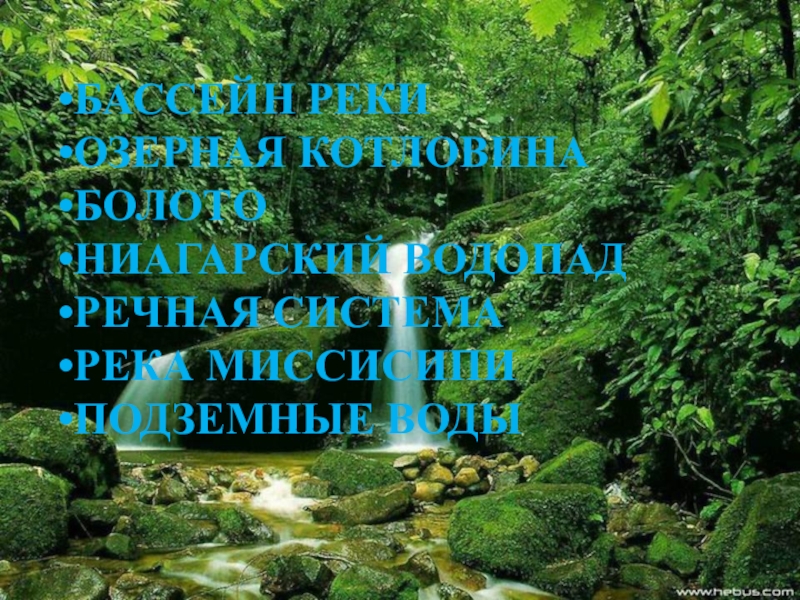 БАССЕЙН РЕКИОЗЕРНАЯ КОТЛОВИНАБОЛОТОНИАГАРСКИЙ ВОДОПАДРЕЧНАЯ СИСТЕМАРЕКА МИССИСИПИПОДЗЕМНЫЕ ВОДЫ