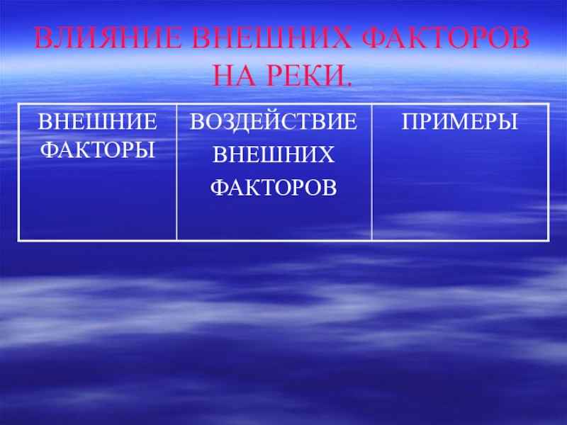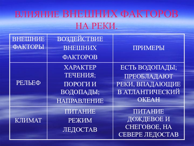 ВЛИЯНИЕ ВНЕШНИХ ФАКТОРОВ НА РЕКИ.