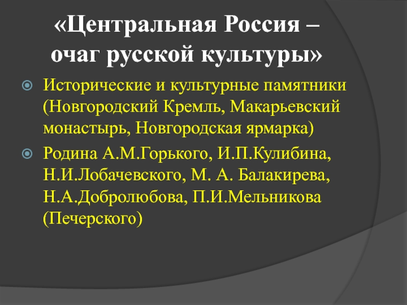 Родина А.М.Горького, И.П.Кулибина, Н.И.Лобачевского, М. А. Балакирева, Н.А.Добролюбова, П.И.Мельникова (Печерского)