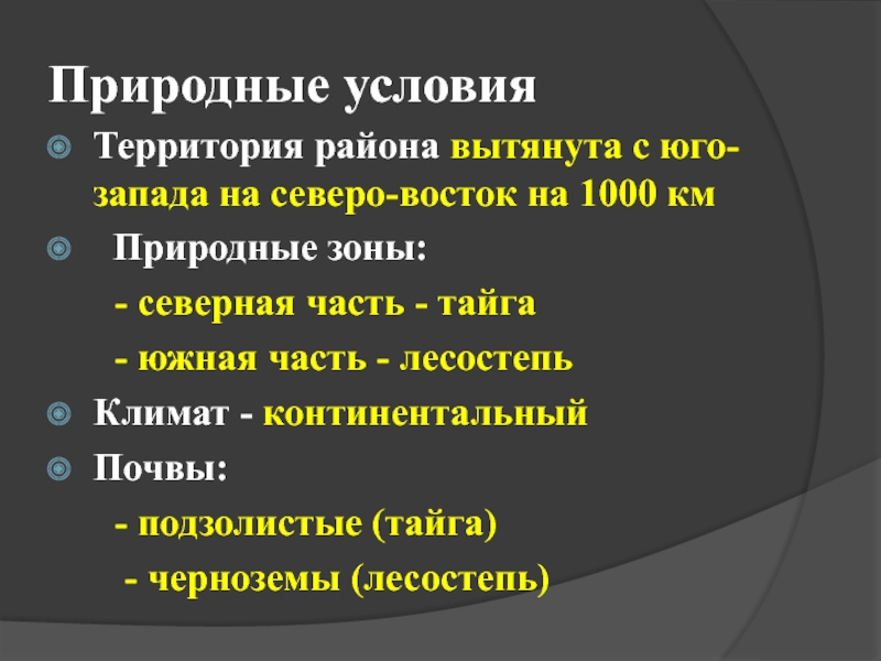 Территория района вытянута с юго-запада на северо-восток на 1000 км