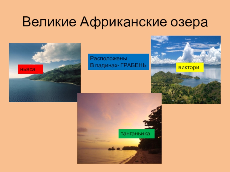 Великие Африканские озераньясавикториятанганьикаРасположены В падинах- ГРАБЕНЬ